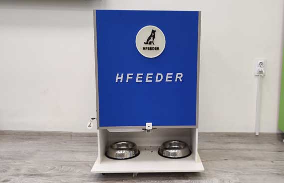 HFEEDERe автономна хранилка и поилка за животни, използваща изкуствен интелект да разпознава животното което е пред нея. Хранилката е електронезависима поради инсталирания слънчер панел и батерия.